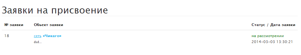 4. В разделе «Мои заявки» появится Ваша заявка на присвоение организации